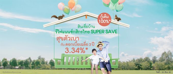 สินเชื่อบ้านรีไฟแนนซ์กสิกรไทย SUPER SAVE สุขตัวเบากับดอกเบี้ยเฉลี่ย 3 ปี 3.34% ต่อปี