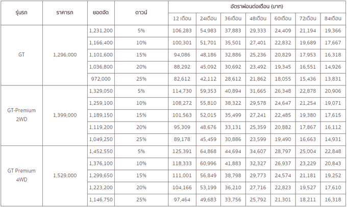 ตารางผ่อนชำระตามอัตราดอกเบี้ยสำหรับ Mitsubishi Pajero Sport