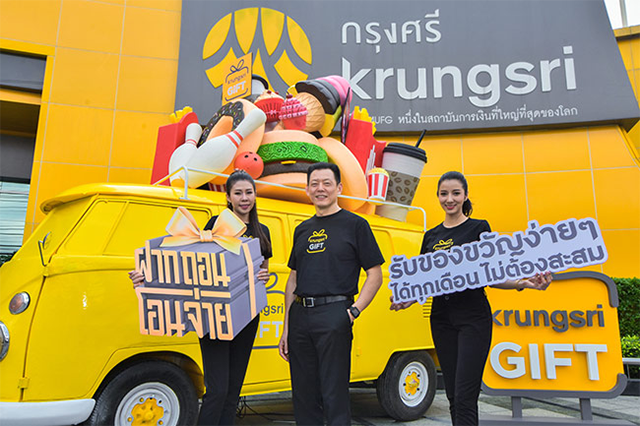 "Krungsri GIFT จะต่อยอดการทำธุรกรรมการเงินของลูกค้าให้เป็นสิทธิประโยขน์ที่มากขึ้นกว่าเดิม ทุกๆ ครั้งที่ทำธุรกรรมครบทั้ง 4 ประเภทในแต่ละเดือนผ่านช่องทางต่างๆ ของกรุงศรีไม่ว่าจะเป็น KMA กรุงศรีออนไลน์ เครื่อง ATM/ ADM หรือสาขาของธนาคาร ลูกค้าจะได้รับของขวัญแทนคำขอบคุณจากธนาคาร โดยไม่จำเป็นต้องสะสมแต้มหรือคะแนนอีกต่อไป โครงการดังกล่าวเป็นการตอกย้ำกลยุทธ์ "Digital First" ของธนาคารในการมุ่งส่งมอบประสบการณ์ที่เหนือกว่าให้กับลูกค้า โดยกรุงศรีหวังว่าจะช่วยเพิ่มยอดการทำธุรกรรมในแต่ละเดือนให้เพิ่มมากขึ้นอีกด้วย"