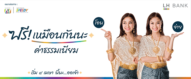 ธนาคารแลนด์ แอนด์ เฮ้าส์ ขอมอบสิทธิพิเศษแทนคำขอบคุณ สำหรับลูกค้าบุคคลธรรมดาที่ไว้วางใจใช้บริการของธนาคารผ่านช่องทางดิจิทัล ตั้งแต่วันที่ 4 เมษายน - 31 ธันวาคม 2561 ฟรีค่าธรรมเนียมทุกธุรกรรม ผ่านช่องทางLH Bank M Choice (แอปพลิเคชันบนมือถือ) และ LH Bank Speedy (อินเตอร์เน็ตแบงก์กิ้ง)