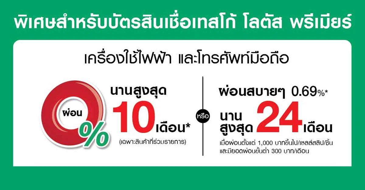 เครื่องใช้ไฟฟ้า และโทรศัพท์มือถือ เลือกผ่อนได้ พิเศษ! จากบัตรสินเชื่อเทสโก้ โลตัส พรีเมียร์