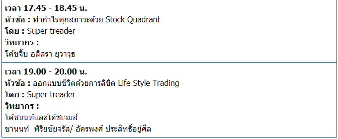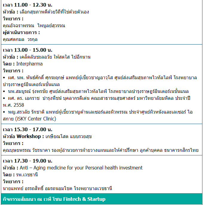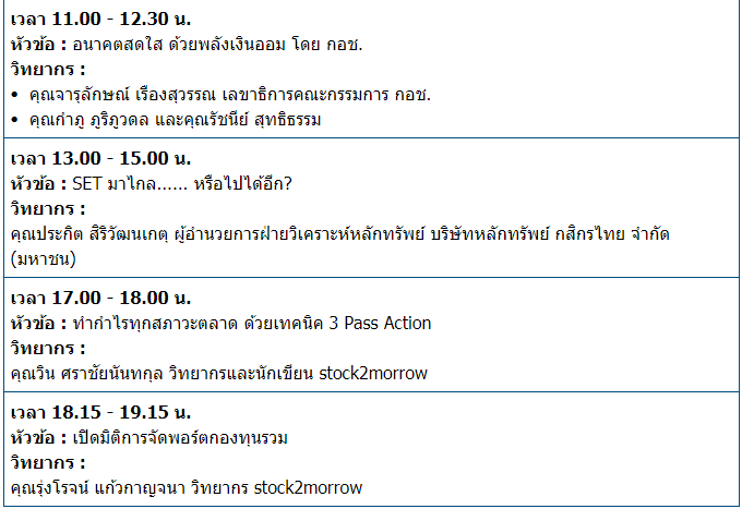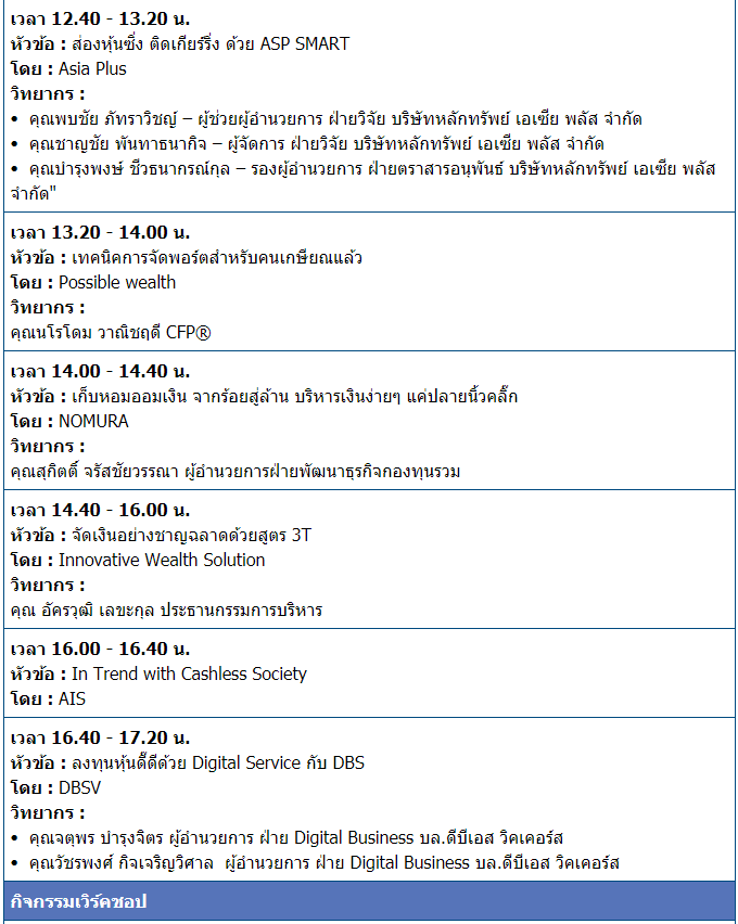 - เวลา 16.20 - 17.00 น. S2S Fly High บูธ ธ.กรุงศรีอยุธยา