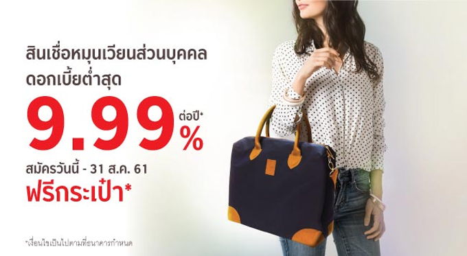 สินเชื่อหมุนเวียนส่วนบุคคล อนุมัติเร็ว วงเงินสูง ผ่อนสบายนาน 60 เดือน รับฟรี! กระเป๋า Overnight