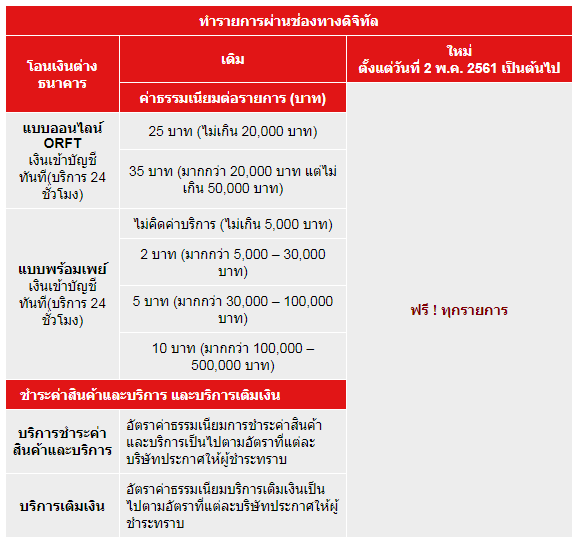 ฟรี ค่าธรรมเนียม ทุกรายการ เมื่อโอน เติม จ่าย ผ่านช่องทางดิจิทัลแบงก์กิ้งของธนาคาร