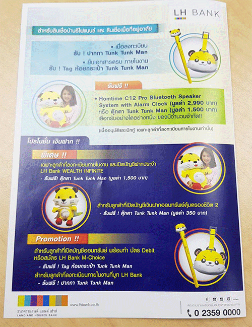 นำเด่นมาด้วยโปรโมชั่นบัญชีใหม่ เงินฝากประจำ LH Bank Wealth Infinite เพียงลงทะเบียนภายในงาน และเปิดบัญชี รับฟรี! ตุ๊กตา Tunk Tunk Man มูลค่า 1,500 บาททันที นอกจากนี้ยังมีโปรโมชั่นพร้อมของสมนาคุณ น้อง Tung Tung Man น่ารักๆ อีกเพียบเลยค่ะ ^^