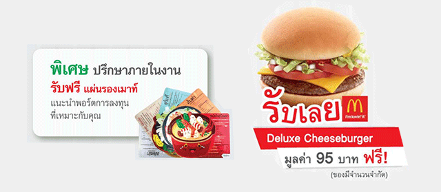 1. ที่ปรึกษาทางการเงินธนาคารกสิกรไทย ให้คำแนะนำ เรื่องการลงทุน ภาษี เกษียณ และความคุ้มครอง พิเศษ ปรึกษาภายในงานรับฟรี แผ่นรองเม้าท์