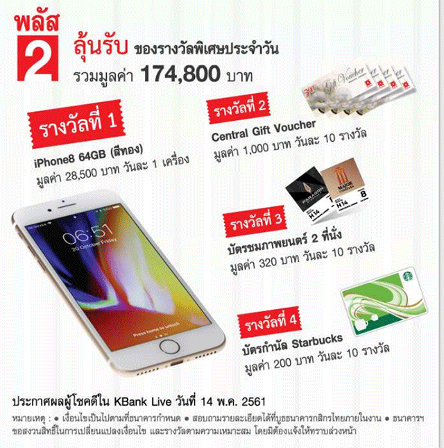 - สะสม 2 แต้ม รับบัตรชมภาพยนตร์ 1 ที่นั่ง มูลค่า 240 บาท