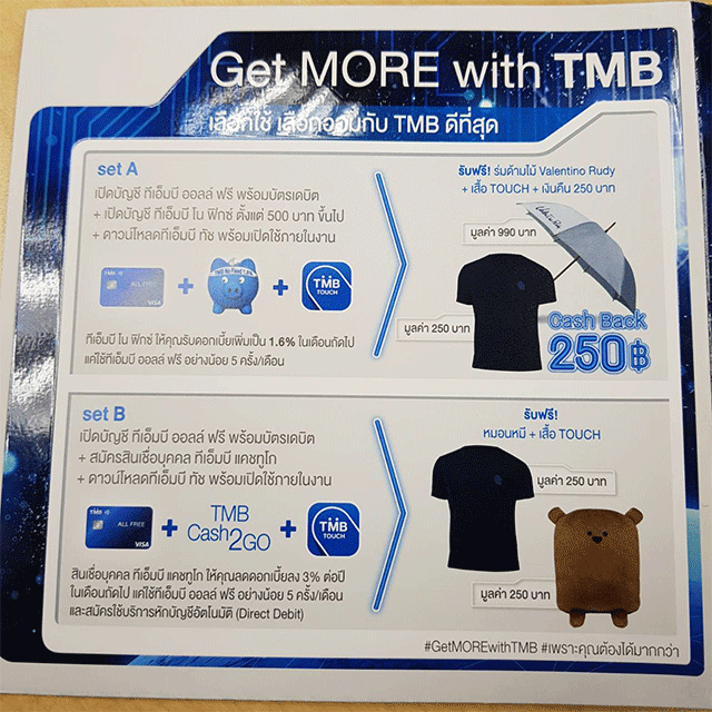 Get More With TMB เพราะคุณต้องได้มากกว่า กับ ธนาคารทหารไทย ปีนี้มาพร้อม 2 บัญชีเงินฝากโดนใจ บัญชีทีเอ็มบี ออลล์ ฟรี ที่ให้ฟรีค่าธรรมเนียมกันอย่างจุใจ และบัญชีทีเอ็มบี โน ฟิกซ์ ที่เปิดบัญชีเท่าไหร่ก็ได้ ให้ดอกเบี้ยสูง 1.30% ตั้งแต่บาทแรก และสามารถถอนเมื่อไหร่ก็ได้ พร้อมรับของสมนาคุณน่าสนใจเพียบ มีอะไรบ้างไปดูกันเลย...
