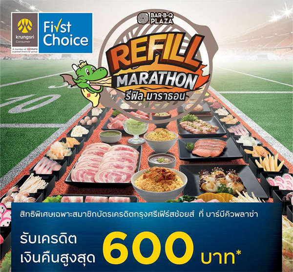 รายละเอียดโปรโมชั่น : อิ่มแบบมาราธอน รับเครดิตเงินคืนรวมสูงสุด 23% ที่ Bar-B-Q Plaza