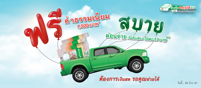 • ฟรี! ค่าธรรมเนียมประเมินมูลค่ารถยนต์ตามสภาพ 1,500 บาท