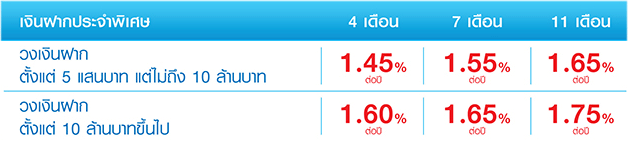 บัญชีเงินฝากประจำพิเศษ จากธนาคารทิสโก้  สำหรับลูกค้าบุคคลธรรมดาเท่านั้น มี 3 ช่วงระยะเวลาให้เลือกฝาก คือ 4 เดือน 7 เดือน และ 11 เดือน