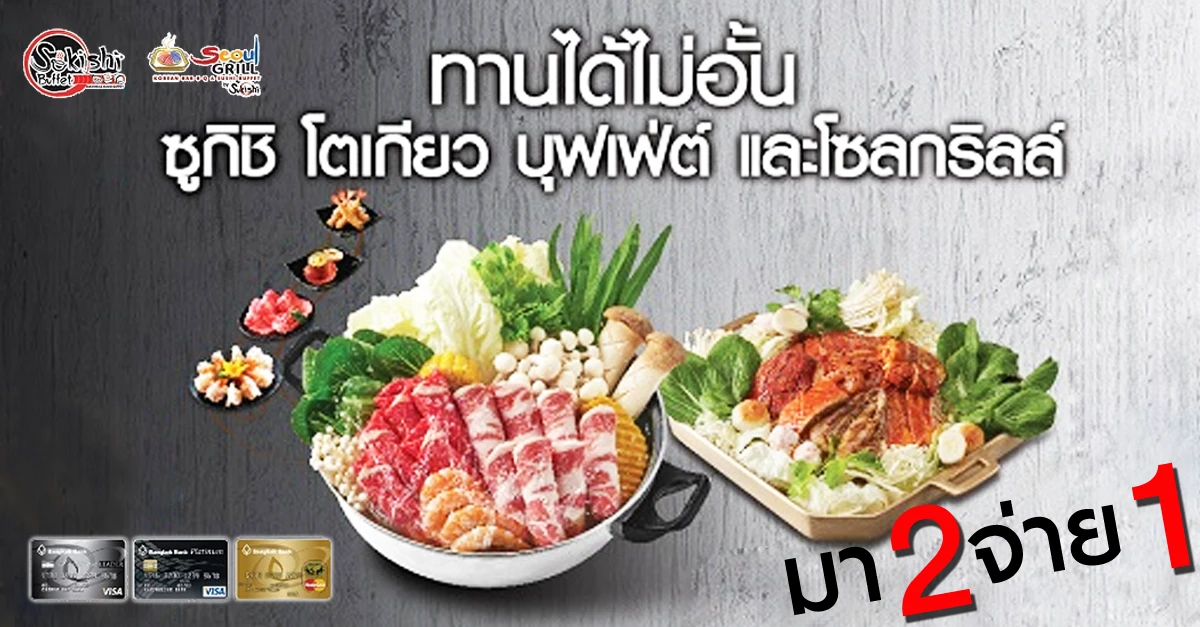 | บุฟเฟ่ต์ มา 2 จ่าย 1 | รับส่วนลดเพิ่ม |