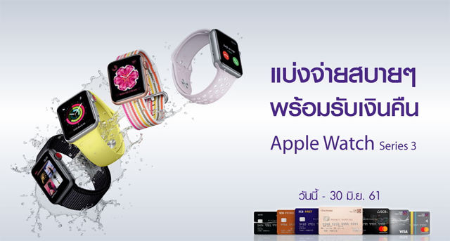 Apple Watch Series 3 แบ่งจ่ายสบายๆ 0% นาน 10 เดือน พร้อมรับเงินคืนสูงสุด 20% จากบัตรเครดิต SCB