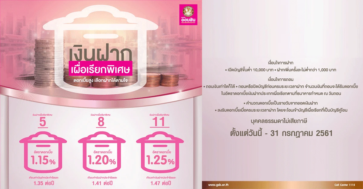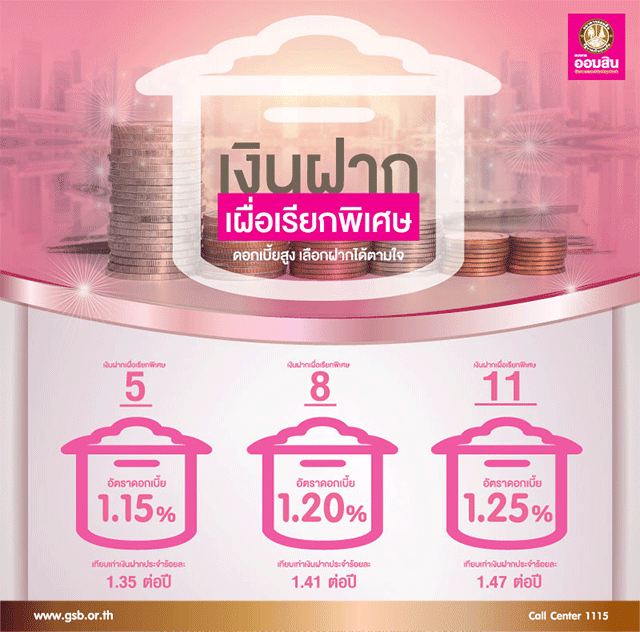 ธนาคารออมสิน เงินฝากเผื่อเรียกพิเศษ เงินฝากเผื่อเรียกพิเศษ 5 เดือน เงินฝากเผื่อเรียกพิเศษ 8 เดือน เงินฝากเผื่อเรียกพิเศษ 11 เดือน
