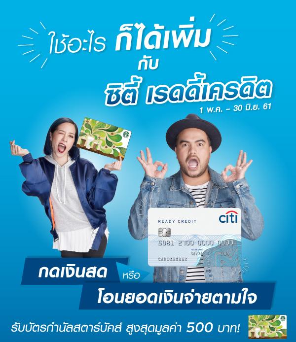 ใช้อะไร ก็ได้เพิ่ม กับ ซิตี้ เรดดี้เครดิต จะกดเงินสดหรือโอน รับบัตรกำนัลสตาร์บัคส์ สูงสุด 500 บาท