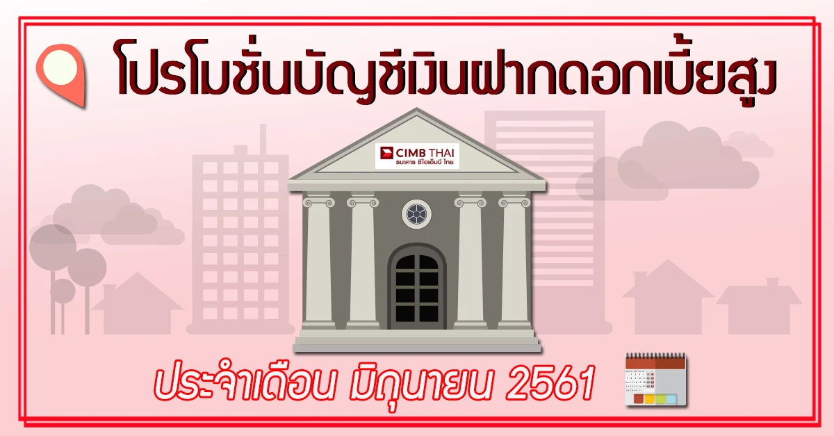 โปรโมชั่นบัญชีเงินฝากดอกเบี้ยสูงประจำเดือนมิถุนายน 2561 จากธนาคารซีไอเอ็มบี ไทย บัญชีเงินฝากประจำแบบมีกำหนดระยะเวลาที่ให้ดอกเบี้ยสูง และสามารถเลือกรับดอกเบี้ยแบบรายเดือน หรือเมื่อครบกำหนดได้