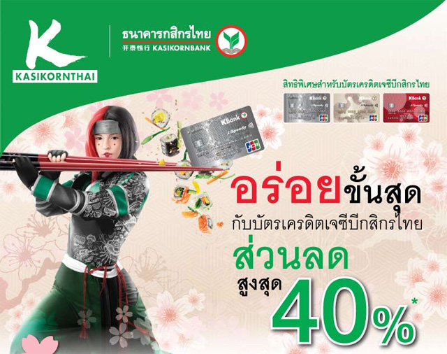 อร่อยขั้นสุด! กับบัตรเครดิตเจซีบีกสิกรไทย รับส่วนลดสูงสุด 40% พร้อมเครดิตเงินคืน ณ ร้านอาหารญี่ปุ่นชั้นนำ