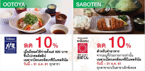 • สงวนสิทธิ์การรับส่วนลดเฉพาะผู้ถือบัตรเครดิตเจซีบีกสิกรไทยเท่านั้น