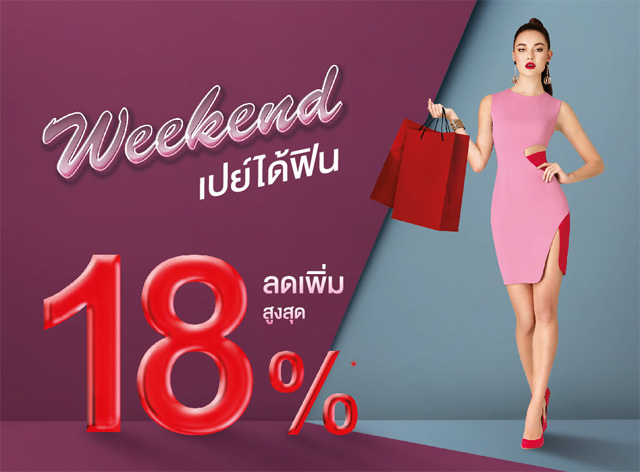 Weekend เปย์ได้ฟิน! ลดเพิ่มสูงสุด 18% เมื่อช้อปทุกวันเสาร์ - อาทิตย์ ณ ร้านค้าในเครือ Central Group ที่ร่วมรายการ ผ่านบัตรเครดิตเซ็นทรัล เดอะวัน