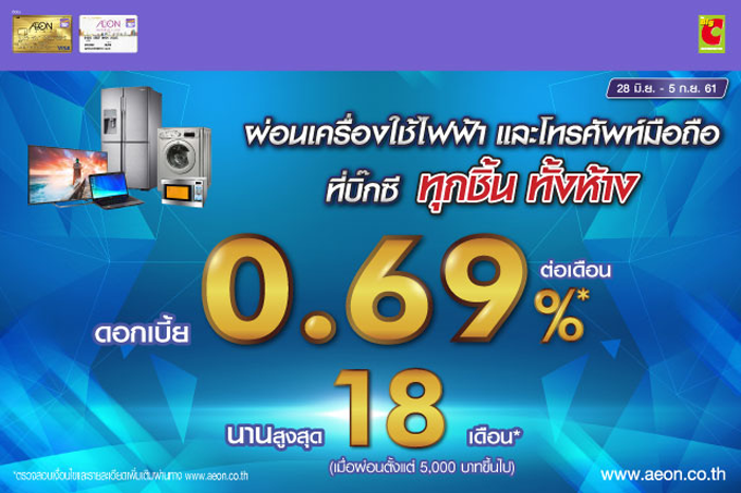 ผ่อนเครื่องใช้ไฟฟ้า และโทรศัพท์มือถือ ที่บิ๊กซี ทุกชิ้น ทั้งห้าง ดอกเบี้ย 0.69% นาน 18 เดือน จากอิออน