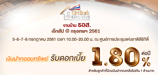 ธอส. อาคารสงเคราะห์ บัญชีออมทรัพย์ดอกเบี้ยสูง ธอส. เอ็กซ์โป @กรุงเทพ 2561