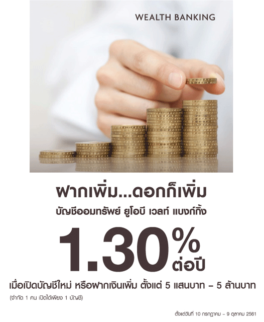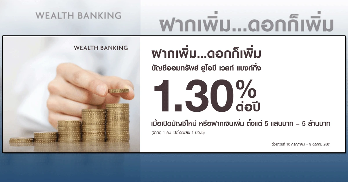 | 500,000 - 5,000,000 บาท | รับดอกเบี้ยโบนัส 0.30% ต่อปี เพิ่มจากอัตราดอกเบี้ยปกติ | 1.30% |