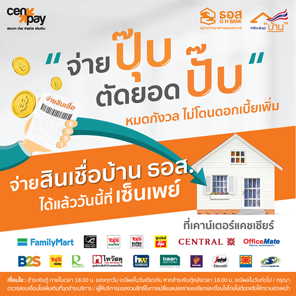 โดยความร่วมมือ ระหว่าง ธนาคารอาคารสงเคราะห์ กับ บริษัท ห้างเซ็นทรัล ดีพาทเมนท์สโตร์ จำกัด (Cenpay)