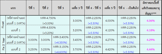 • อัตราดอกเบี้ยที่แท้จริงข้างต้นเป็นเพียงตัวอย่างที่ใช้ในการคำนวณจากวงเงินสินเชื่อ 3 ล้านบาท ระยะเวลากู้ 10 ปี และผ่อนชำระค่างวดปกติเท่านั้น  MRR = 7.7500% (ณ 25 พ.ค.60)