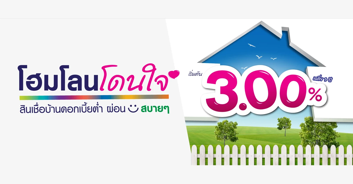 โฮมโลนโดนใจ สินเชื่อบ้านดอกเบี้ยต่ำ ผ่อนสบายๆ เริ่มต้นเฉลี่ย 3 ปี 3.00% ต่อปี จาก LH Bank