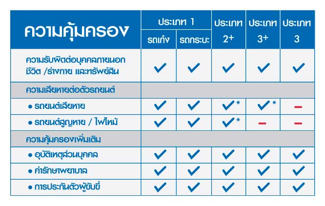 • ประกันรถชั้น 2+, 2, 3+, 3 และพ.ร.บ.ไม่ร่วมรายการ
