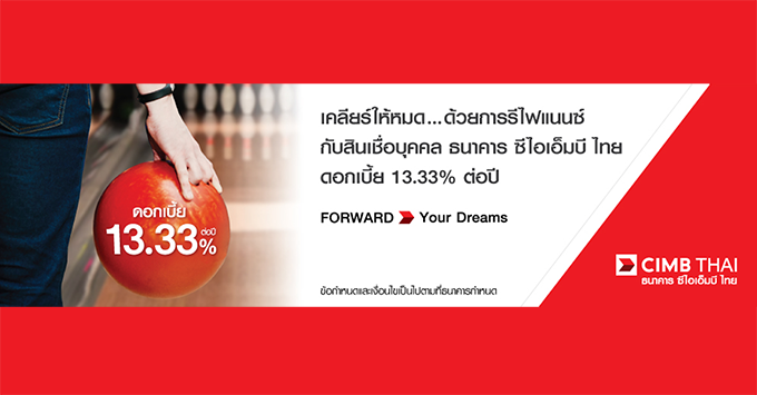 เคลียร์ให้หมด...ด้วยการรีไฟแนนซ์ กับสินเชื่อบุคคล ธนาคาร ซีไอเอ็มบี ไทย ดอกเบี้ย 13.33% ต่อปี