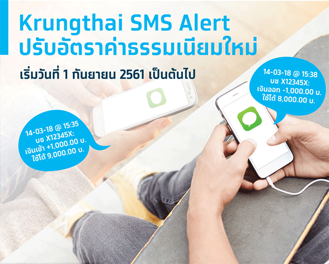 Krungthai SMS Alert ปรับอัตราค่าธรรมเนียมใหม่ 1 กันยายน 2561 เป็นต้นไป