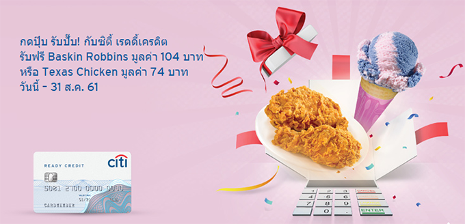 กดปุ๊บ รับปั๊บ ไอศกรีม หรือไก่ทอด กับซิตี้ เรดดี้เครดิต จาก CITIBANK วันนี้ - 31 ส.ค. 61