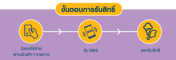 • จะได้รับ SMS เพื่อนำไปแลกสิทธิ์หลังจากทำรายการตามเงื่อนไขภายใน 5 วันทำการ
