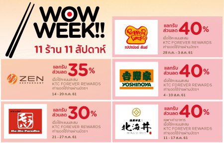 WOW WEEK!! กินญี่ปุ่น ลุ้นบินญี่ปุ่น พร้อมรับส่วนลดสูงสุด 40% สิทธิพิเศษจากบัตรเครดิต KTC