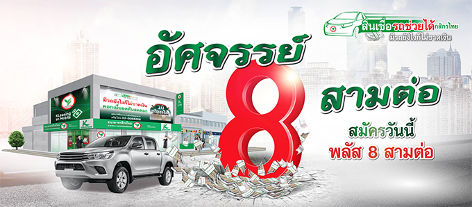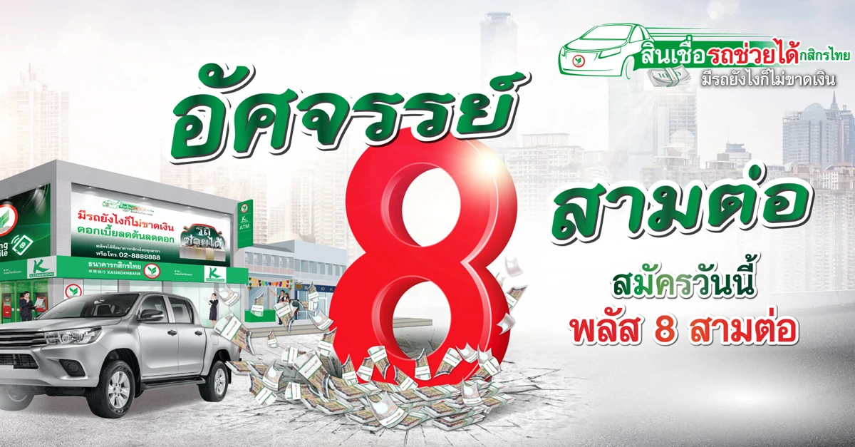 สินเชื่อรถช่วยได้กสิกรไทย อัศจรรย์ 8 สามต่อ มีรถยังไงก็ไม่ขาดเงิน