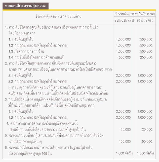 คุ้มครองอุบัติเหตุสูงสุด 2,000,000 บาท*