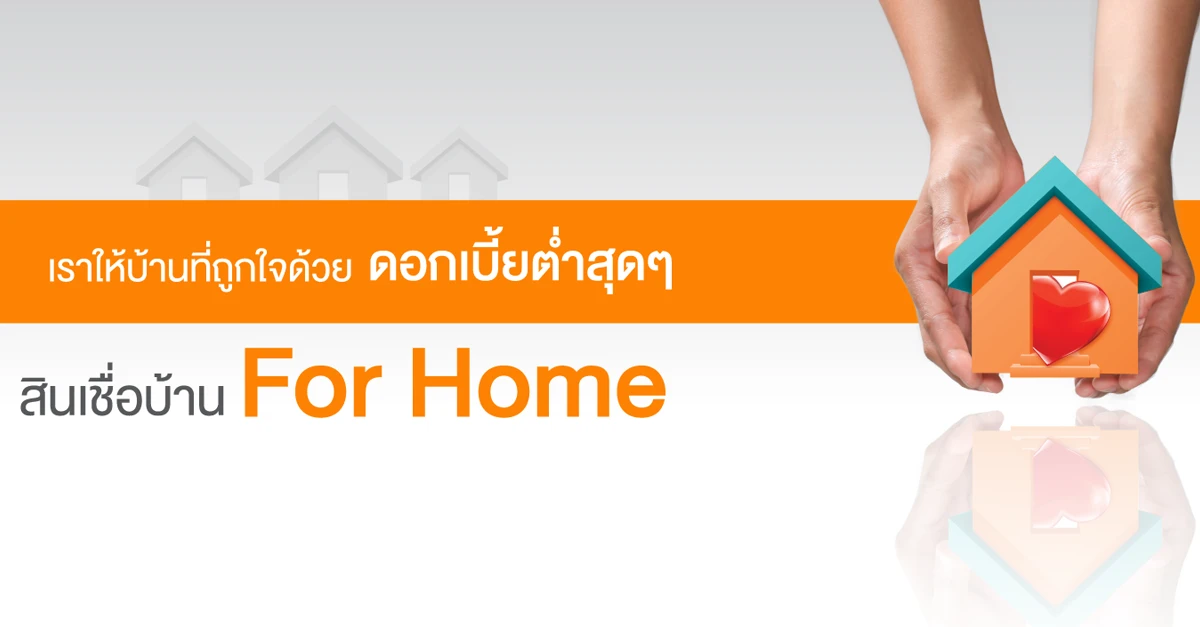 สินเชื่อบ้าน For Home ครั้งที่ 3 (ปี 2561) - รับสิทธิโปรโมชั่นพิเศษ ฟรีค่าธรรมเนียมการยื่นกู้ร้อยละ 0.1 ของวงเงินทำนิติกรรม
