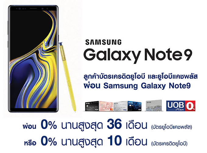 ลูกค้าบัตรเครดิตยูโอบี และยูโอบีแคชพลัส ผ่อน Samsung Galaxy Note 9 นานสูงสุด 36 เดือน