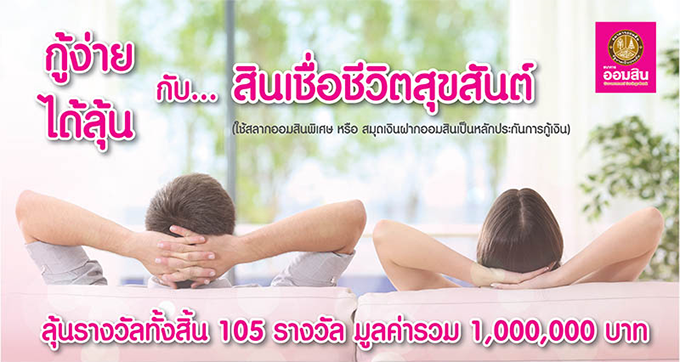 กู้ง่าย ได้ลุ้น กับ...สินเชื่อชีวิตสุขสันต์ ลุ้นรางวัลทั้งสิ้น 105 รางวัล มูลค่ารวม 1,000,000 บาท ตั้งแต่วันที่ 25 มิถุนายน 2561 - 31 ธันวาคม 2561