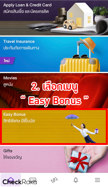 2. เลือกเมนู "Easy Bonus" เพื่อรับสิทธิพิเศษจากอีซี่โบนัส