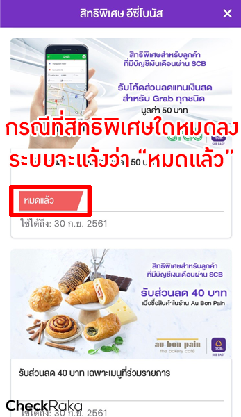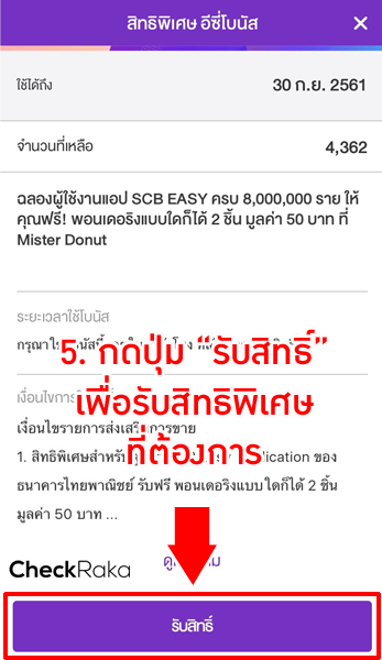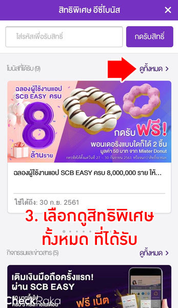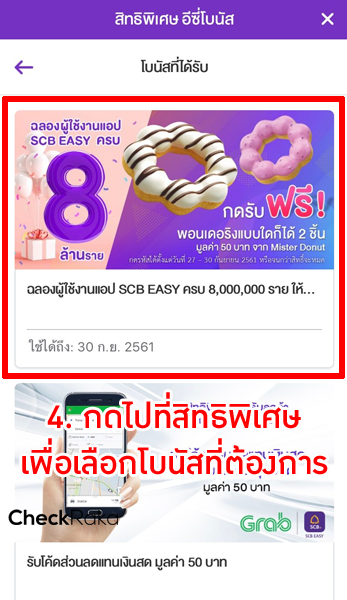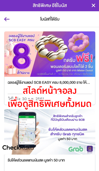 ตัวอย่างการเข้ารับสิทธิพิเศษใน SCB EASY APP > EASY BONUS