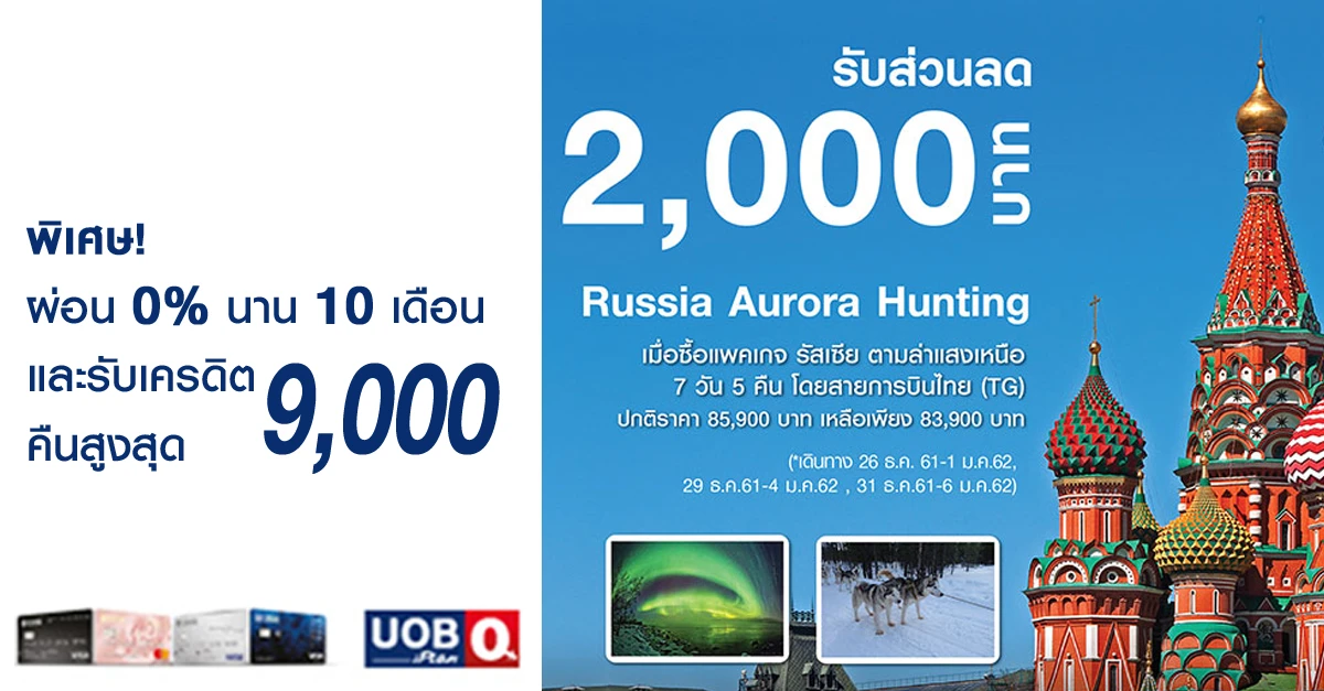 บัตรฯ UOB ชวนล่าแสงเหนือรัสเซีย ไปกับ Quality Express รับส่วนลด 2,000 บาท พร้อมผ่อน 0% 10 เดือน