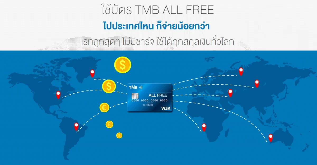 tmb ทหารไทย tmb all free บัตรเดบิต tmb all free อัตราแลกเปลี่ยน exchange rate บัตรเดบิต ทีเอ็มบี ออลล์ ฟรี