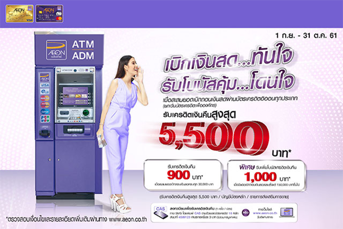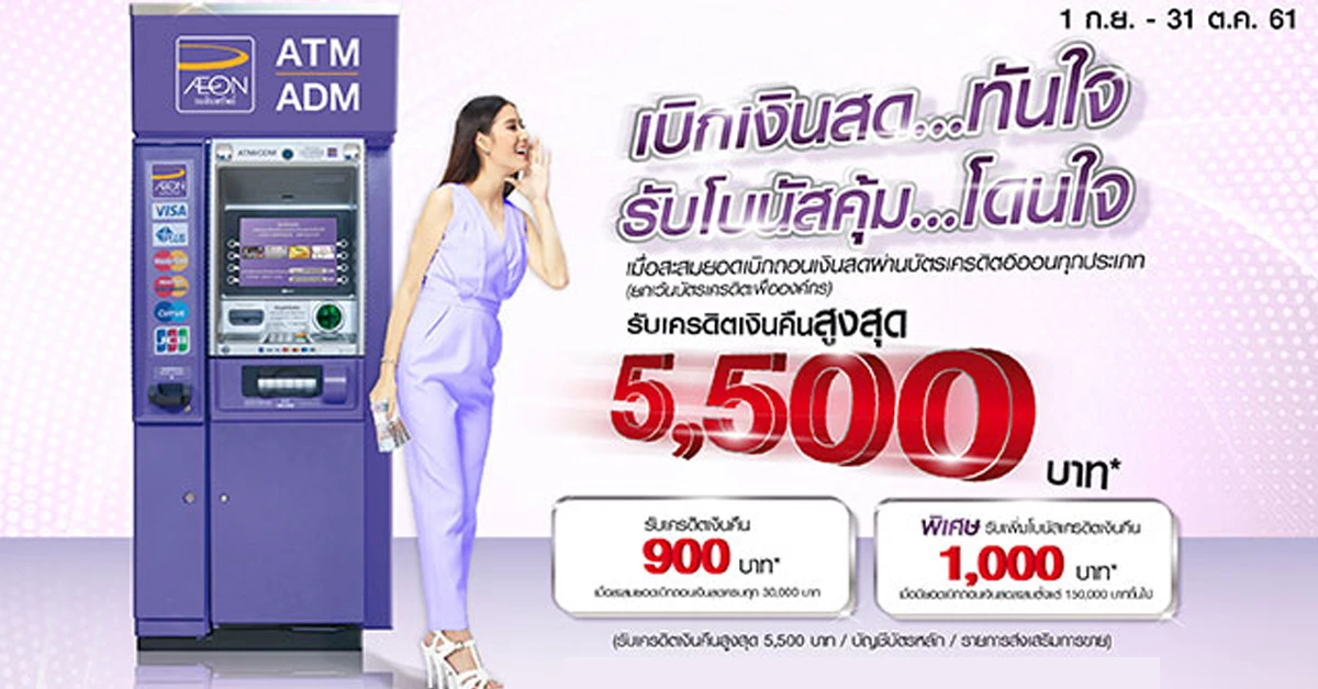 เบิกเงินสดทันใจ รับโบนัสคุ้มโดนใจ เครดิตเงินคืนสูงสุด 5,500 บาท จากบัตรเครดิตอิออน