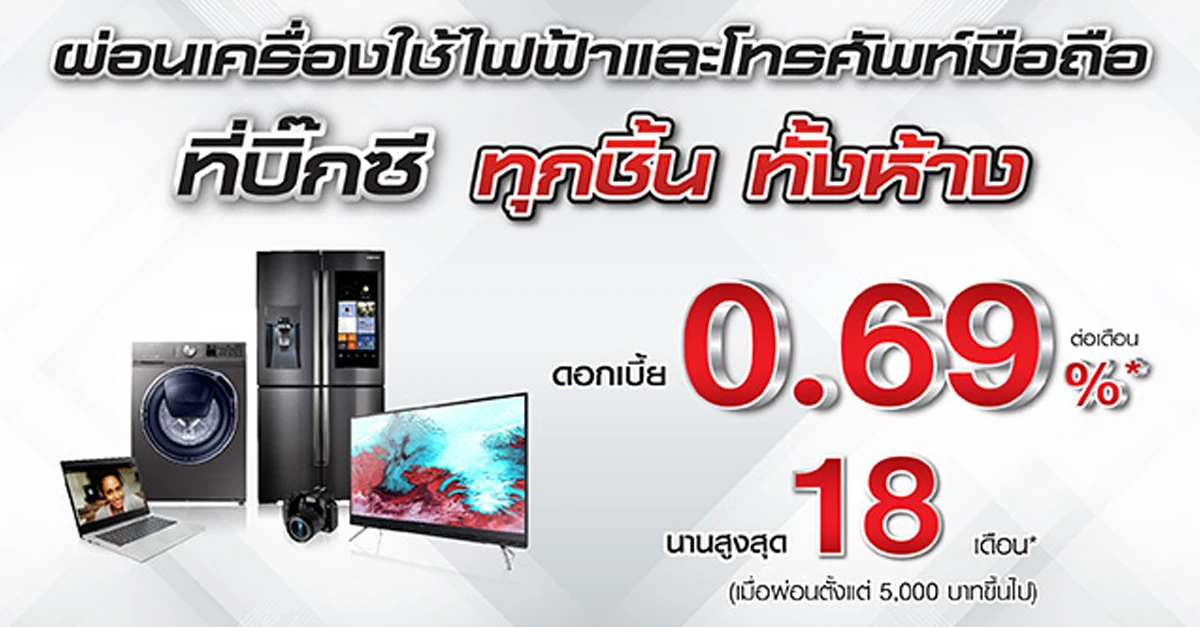 ผ่อนเครื่องใช้ไฟฟ้า โทรศัพท์มือถือและ ไอที เพียง0.69 % ที่บิ๊กซี