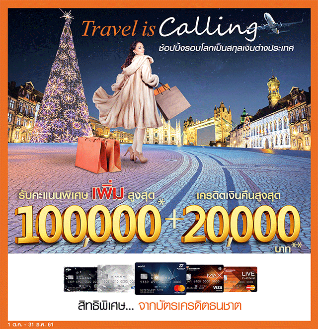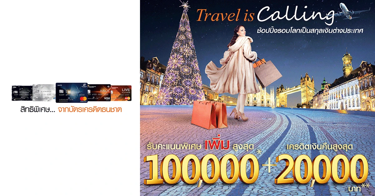 ช้อปปิ้งรอบโลกกับบัตรเครดิตธนชาต รับคะแนนพิเศษเพิ่ม สูงสุด 100,000 และเครดิตเงินคืนสูงสุด 20,000