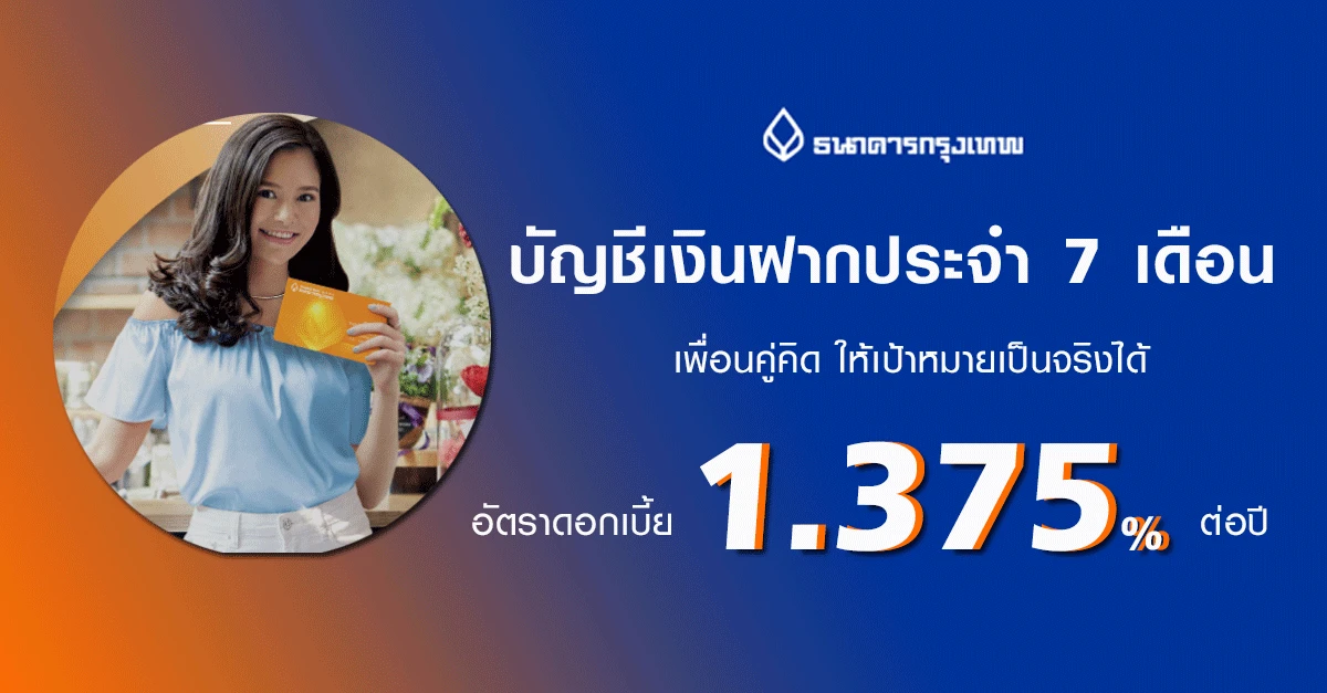 บัญชีเงินฝากประจำ 7 เดือน จาก ธ.กรุงเทพ เพื่อนคู่คิด ให้เป้าหมายเป็นจริงได้ พร้อมรับดอกเบี้ยพิเศษ
