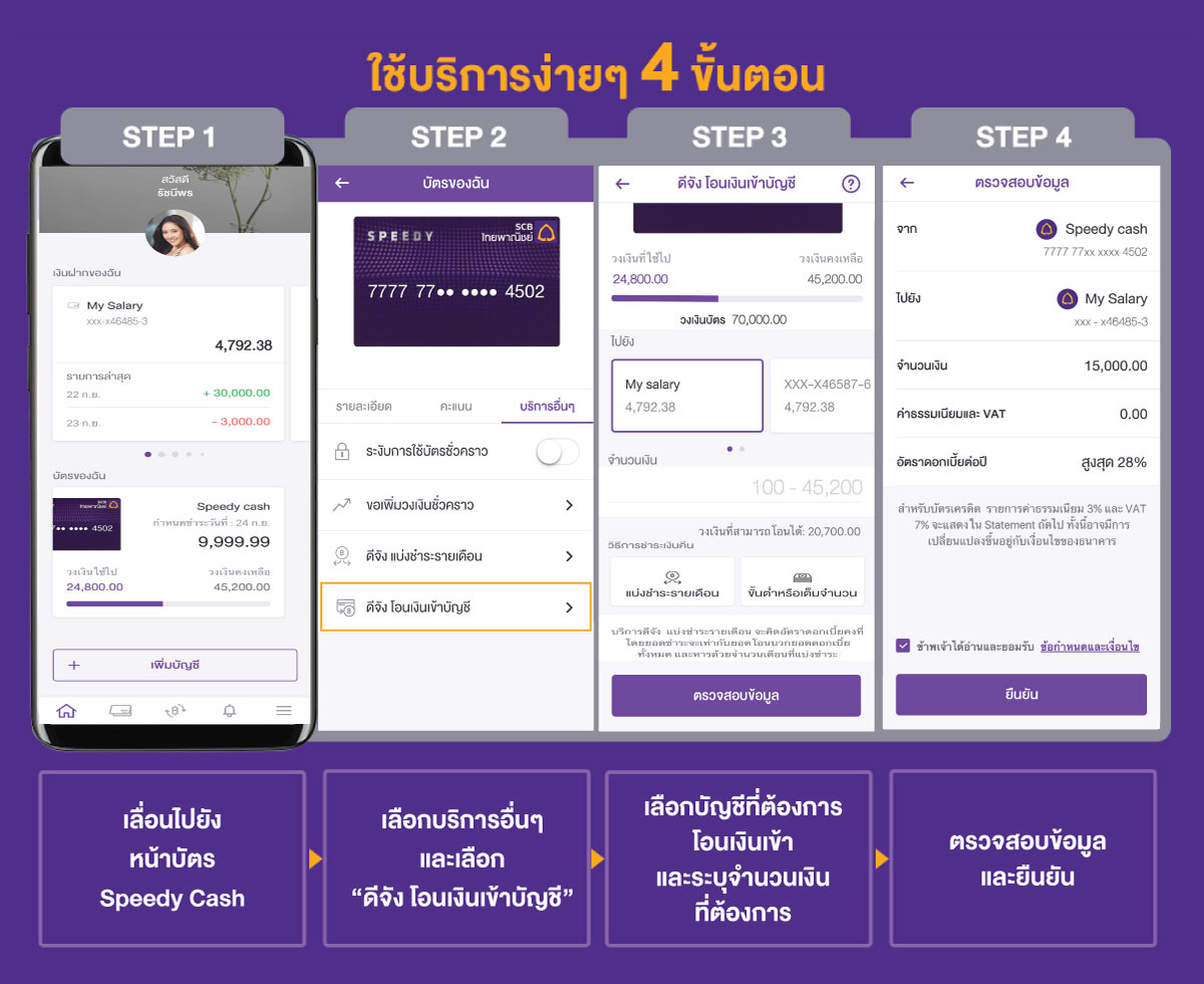 "ดีจัง โอนเงินเข้าบัญชี" บริการที่ช่วยเปลี่ยนวงเงินคงเหลือในบัตร SCB Speedy Cash โอนเข้าบัญชีทันที