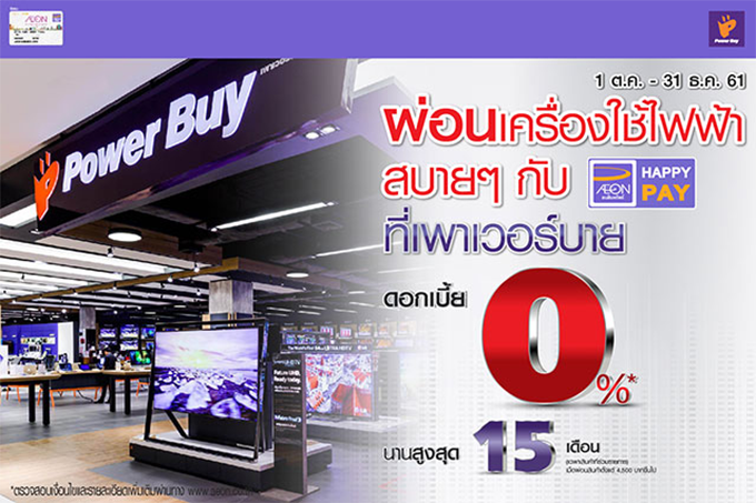 ผ่อนเครื่องใช้ไฟฟ้าสบายๆ กับ AEON Happy Pay ที่ เพาเวอร์บาย พร้อมดอกเบี้ย 0% นานสูงสุด 15 เดือน